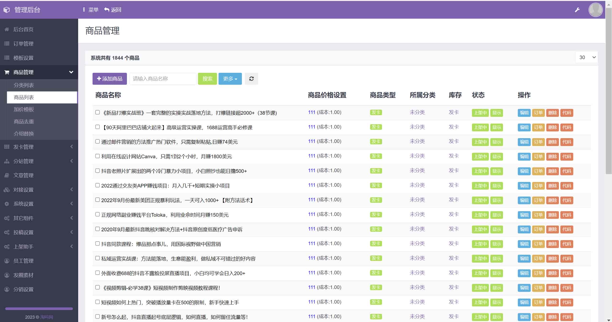 其余员工添加、每日签到、推广功能、抽奖功能、文章功能、发卡功能请您购买后亲自体验,这里不做过多介绍