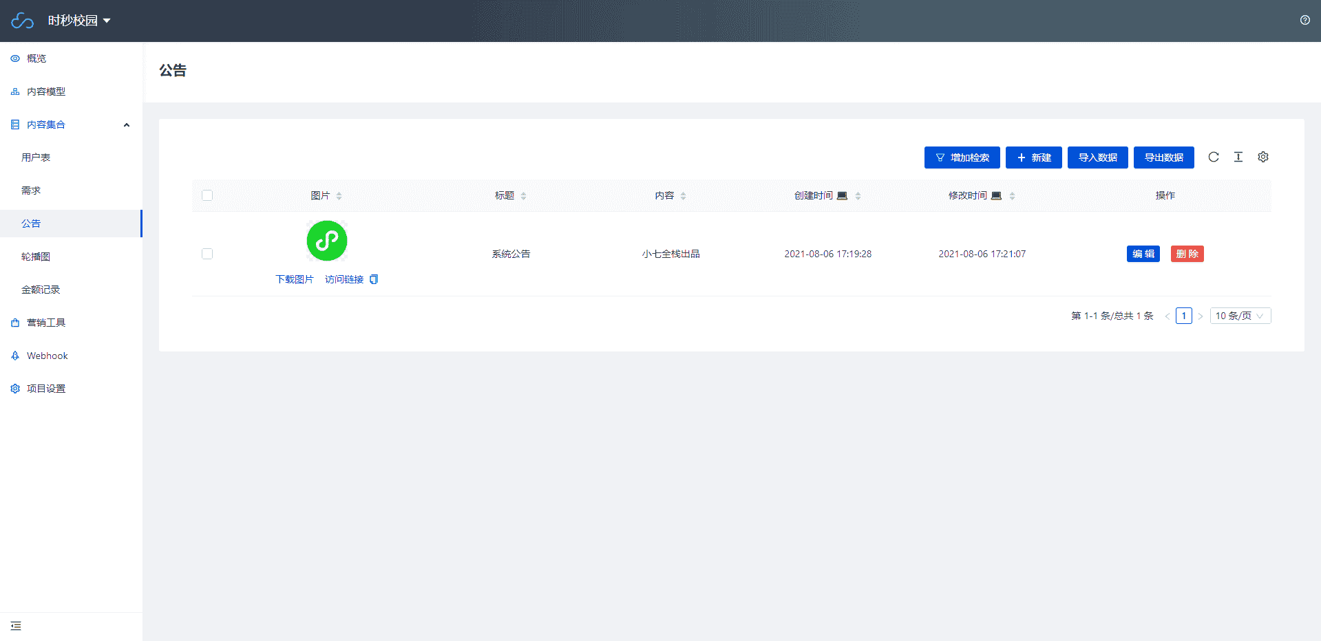开通云开发服务,点击'云开发_更多_内容管理'开通云开发CMS管理后台
