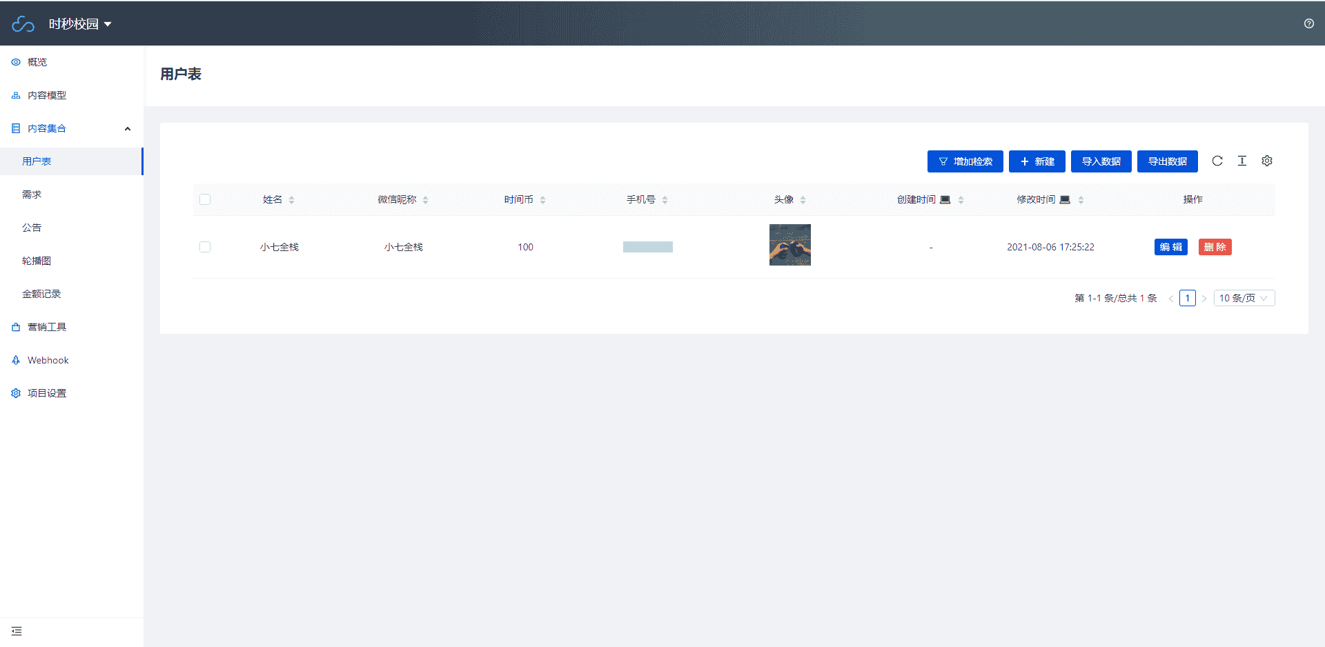 前端应用wx原生的weui组件库 后台基于云开发技术生成可视化管理后台