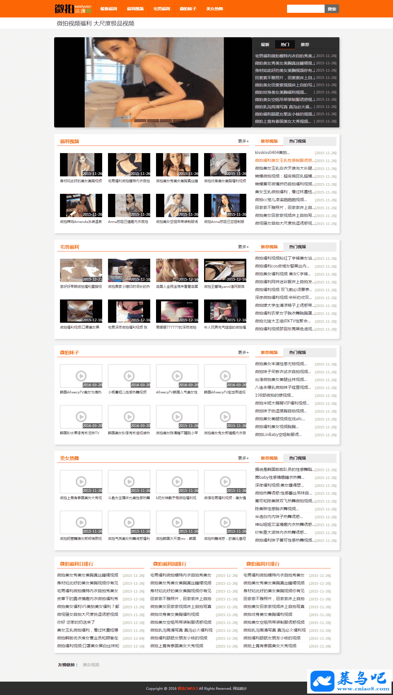 [影音娱乐] 最新微拍福利网视频短片网站整站源码分享,WAP手机自适应,整合CK播放器,附采集数据
