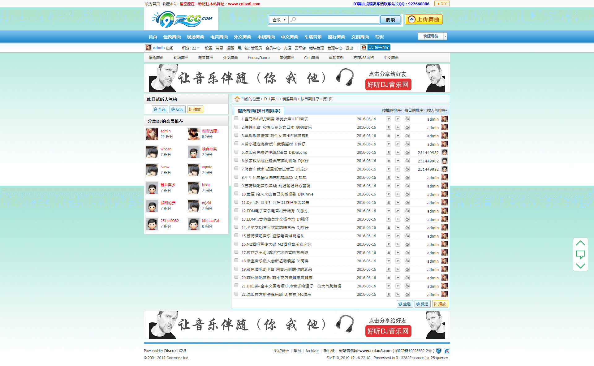 这套源码是采用DZ2.5程序二次开发的音乐系统网站,原先没有音乐的,我自己添加了很多DJ歌曲,有兴趣做DJ网站的可以研究下,包括首页导航下方播放器我也添加了,系统内页带有自动播放器功能,包括歌曲下载积分都可以设置,包括首页广告都布局很完善,非常不错的音乐系统。