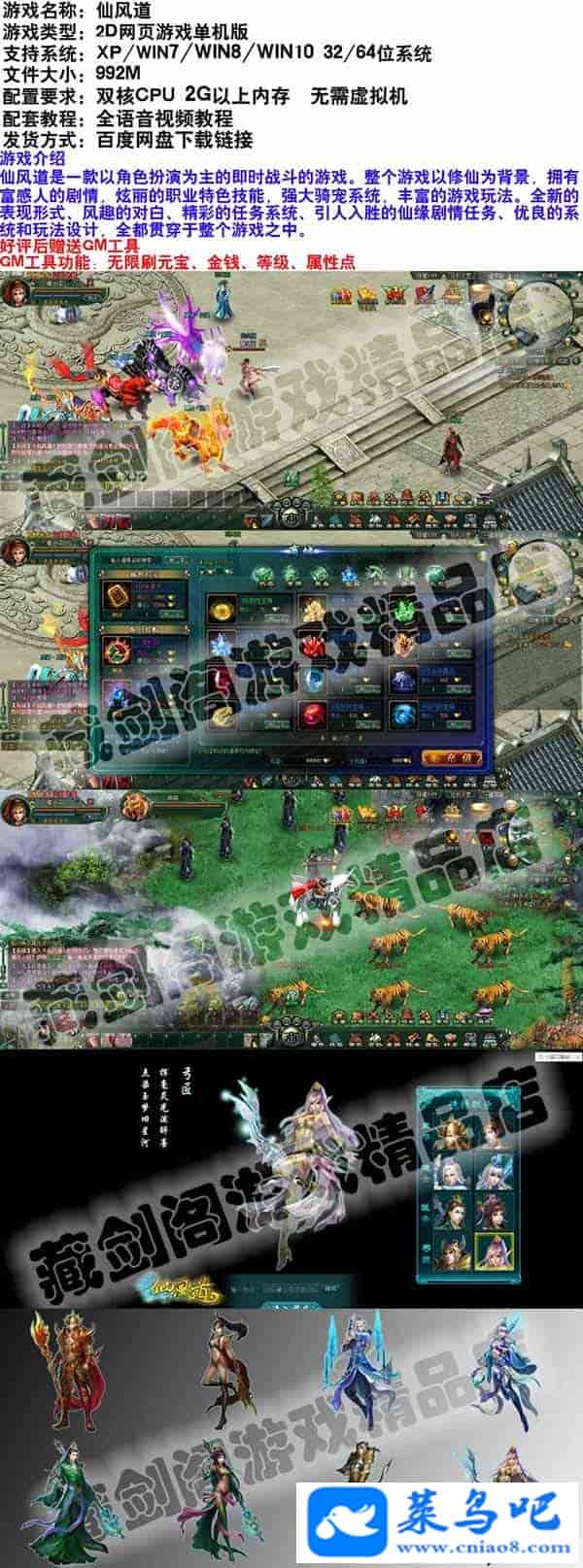仙风道单机版网页游戏修仙类一键端GM刷元宝金钱等级属性点
