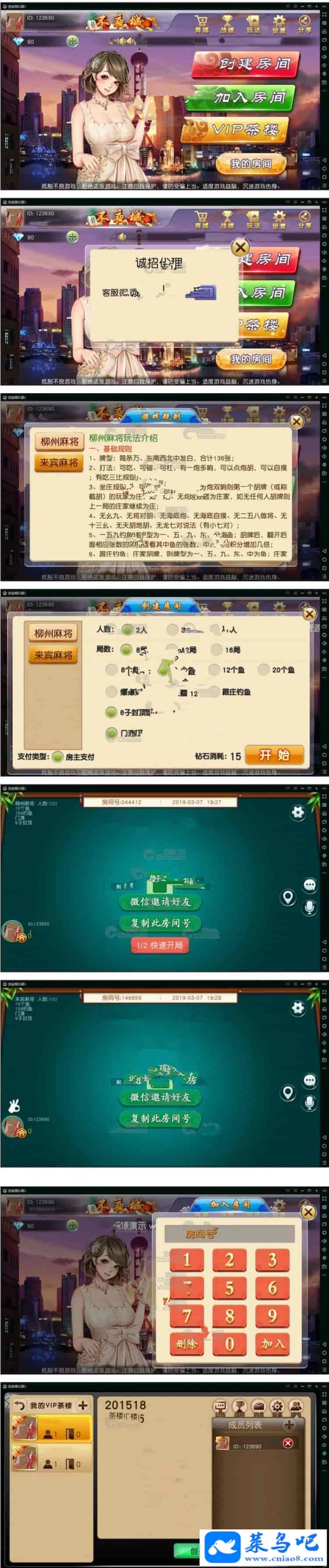 [棋盘源码] 不夜城房卡麻将棋牌游戏完整全套组件+安卓和ios端
