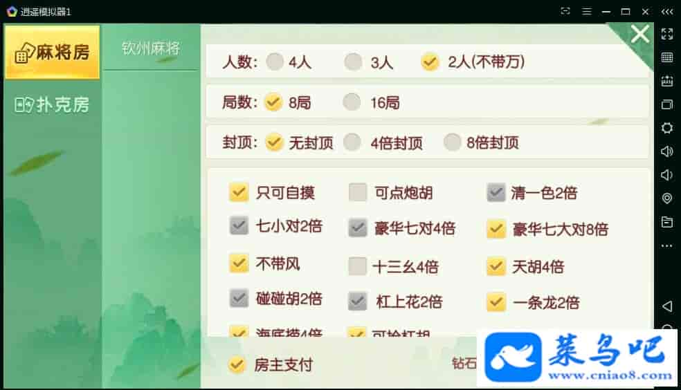 这款是广西地区的独特玩法,只有两个玩法 钦州麻将跟十三张 二合一房卡版,带有俱乐部