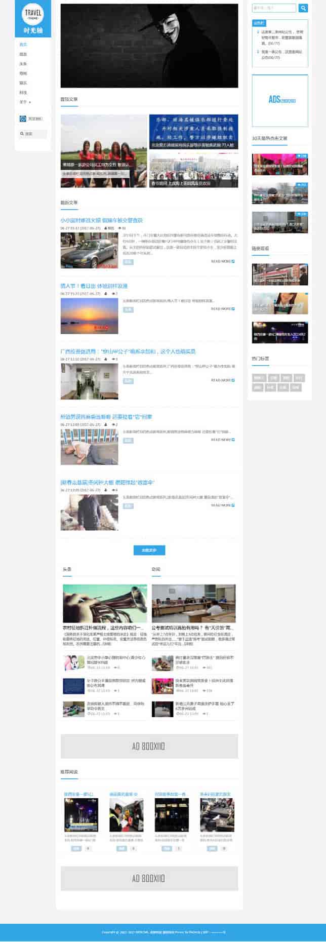 2、首页带逛逛,头条,奇闻,娱乐等栏目,适用于新闻资讯展示类、个人自媒体网站类、个人博客类网站。