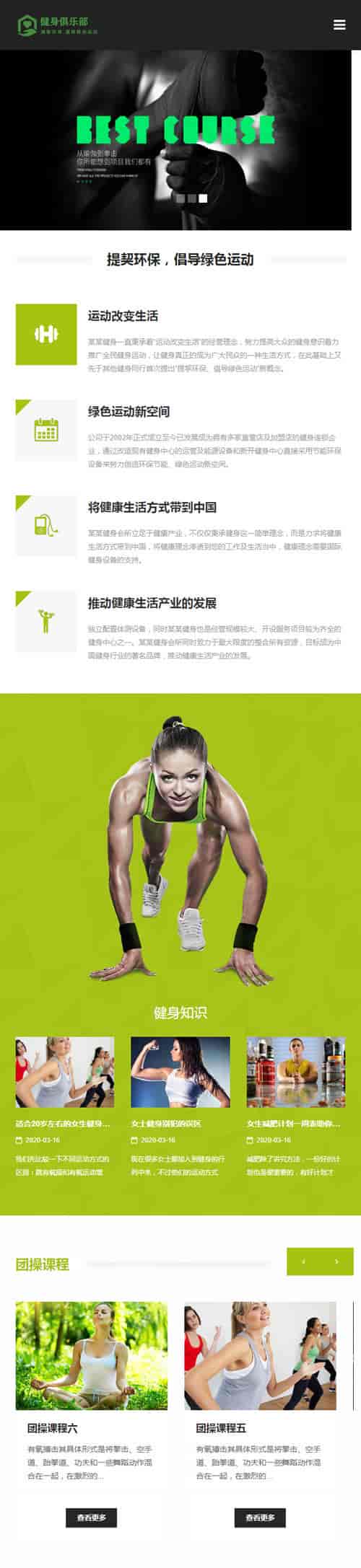 织梦dedecms绿色响应式健身俱乐部企业网站模板(自适应手机移动端)采用织梦最新内核开发的模板,这款模板使用范围广,不仅仅局限于一类型的企业,健身、俱乐部、娱乐会所类的网站都可以用该模板。你只需要把图片和文章内容换成你的即可,颜色都可以修改,改完让你耳目一新的感觉!布局规整,利于用户体验,手工书写DIV+CSS,代码精简。