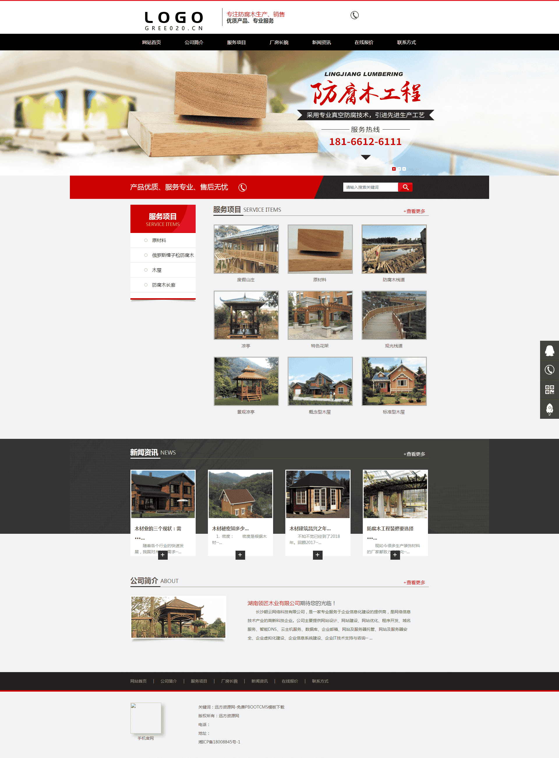 PbootCMS内核开发的网站模板 木屋制作防腐工程pbootcms网站模板响应式端同一个后台,数据即时同步,简单适用!附带测试数据!完美的seo,所有页面均都能完全自定义标题/关键词描述,PHP程序,安全、稳定、快速;