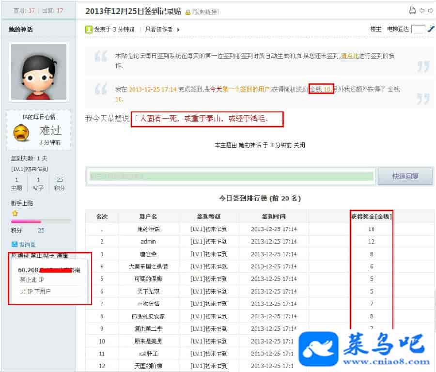 5. 支持指定帖和指定版块每天一主题模式,可以自动创建签到帖子;