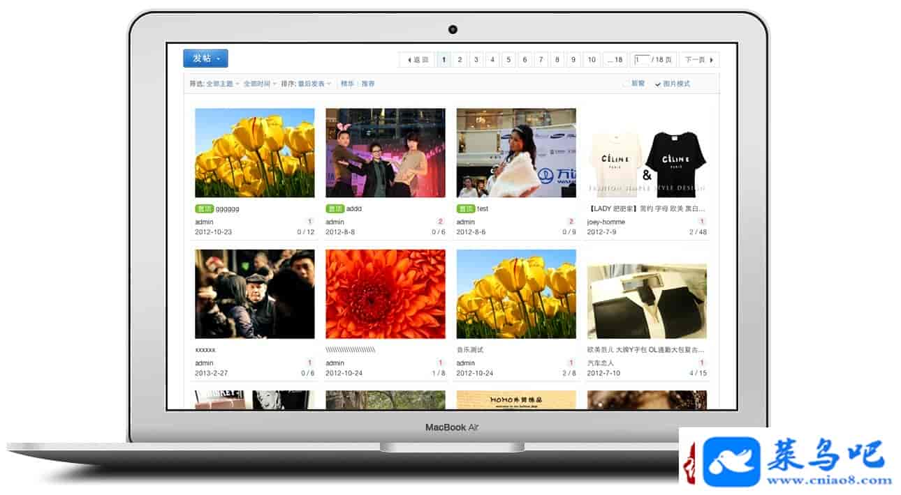 论坛主题列表页的展示界面根据后台设置的封面大小自动变化(参考演示站点)。