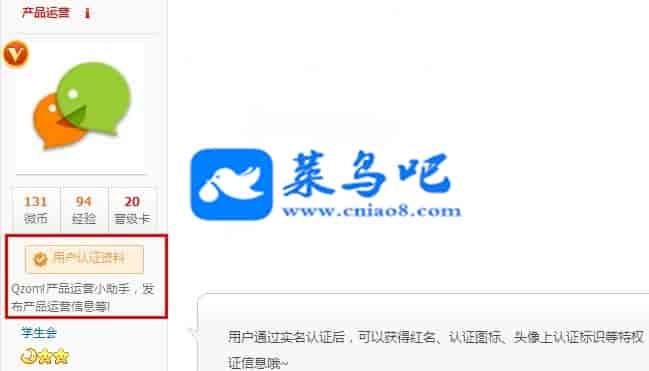 5.认证后用户头像上方会显示认证标识,如果用户填写了认证信息,鼠标放置上去会显示相关认证信息.