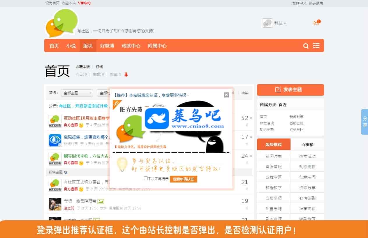3.可自行搭配Discuz! 默认认证增加认证分类,然后向用户弹窗推荐指定的认证类型.