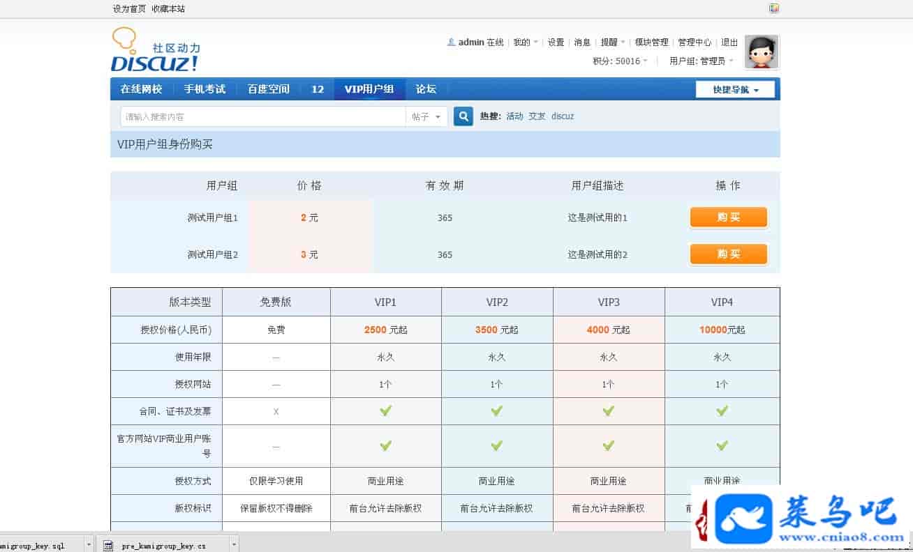 2、配置用户组方式灵活,可自由组合;可控制的项目为——用户组ID,用户组购买时间,用户组购买价格。用户组说明,是否使用积分购买等;