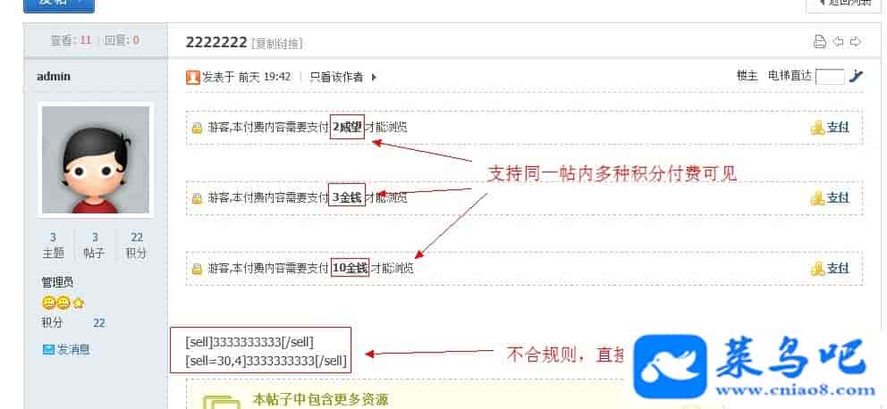 3、后台可设置启用的版块、用户组、免付费用户组等权限控制