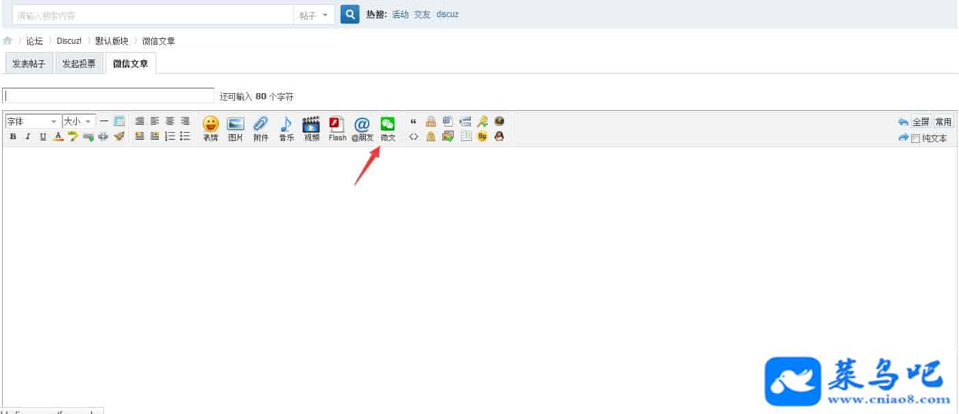 MicXP一键获取微信文章 是一款编辑器增加型插件。添加一个获取微信文章的按钮。点击输入微信公众号文章地址点提交就可以把内容获取到现在编辑的帖内。能很方便站长编辑内容。