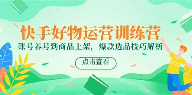 快手好物运营训练营,账号养号到商品上架,爆款选品技巧解析