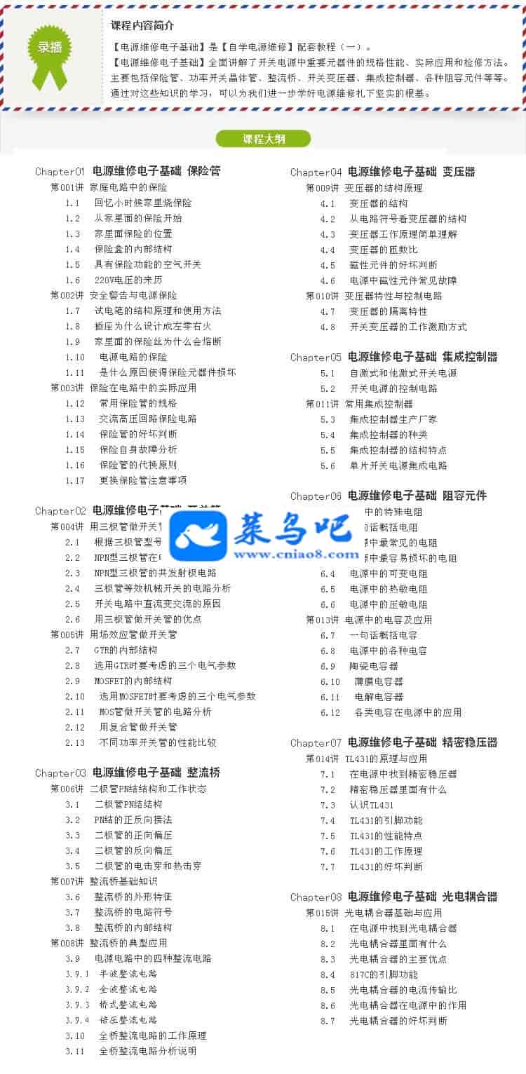 [综合教程] 刘坚强 电源维修电子基础视频教程 电源维修教程 电子电路教程