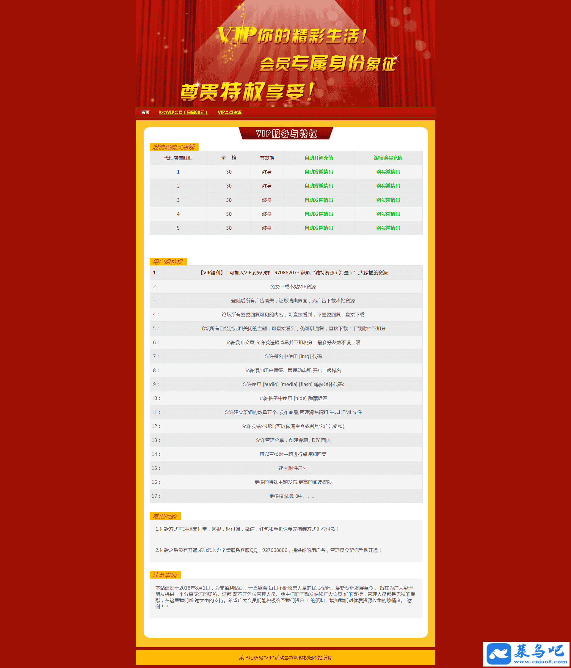 这个源码原来是DZ论坛的插件专用的,由于支付宝关闭了双接口担保接口,让好多小站长都无法收款,这套源码我是从某站扒过来的,这个是html单页的可以用于各种网站,可以简单的编辑。此源码主要用于收款导航界面,前提是有淘宝店铺或者第三方发卡平台,具体怎么样看图