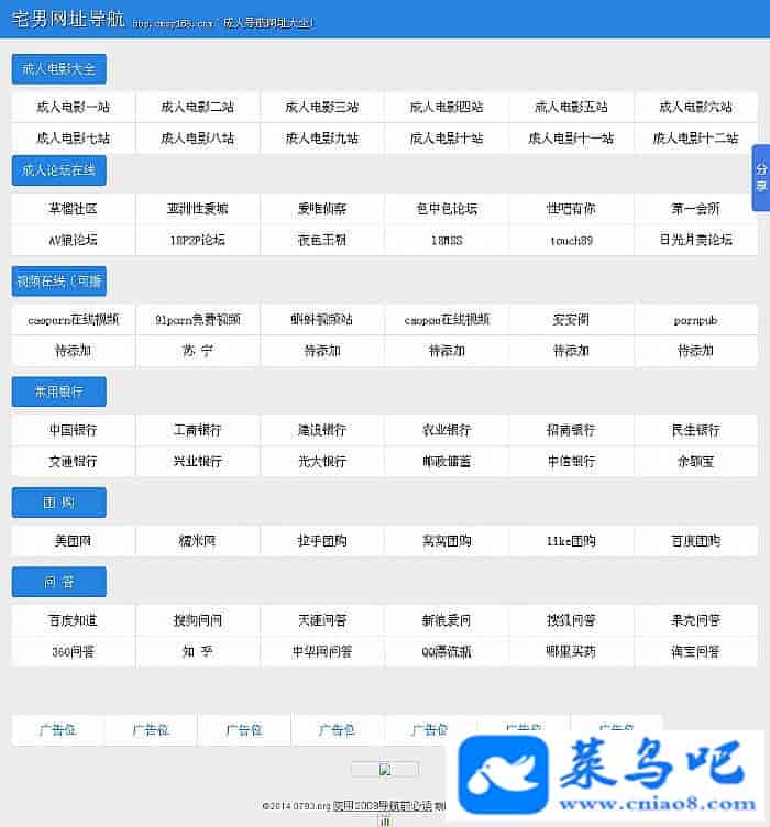 非常适合个人小站长做个网址导航站哦,可能有人看到这个导航界面就想到了什么网站了,呵呵!我自己添加了10几个链接,需要请自行修改添加。