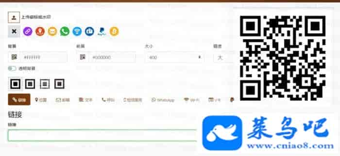 开源响应式QRcdr二维码在线生成系统源码QRcdr是一款开源免费的基于PHP编写的二维码在线生成系统,只需点击几下就可以生成您的个人二维码,上传您的徽标或水印,选择自定义颜色,生成多种类型,选择一个图案并下载最终的二维码图片,可用格式:.png,.svg图片