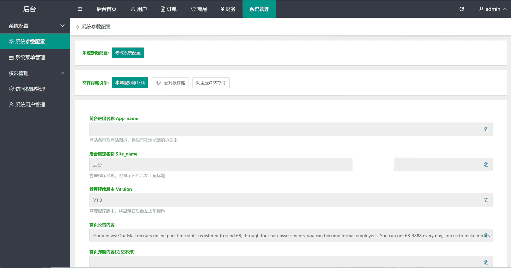 后台登录地址:/admin 账号admin 密码admin123