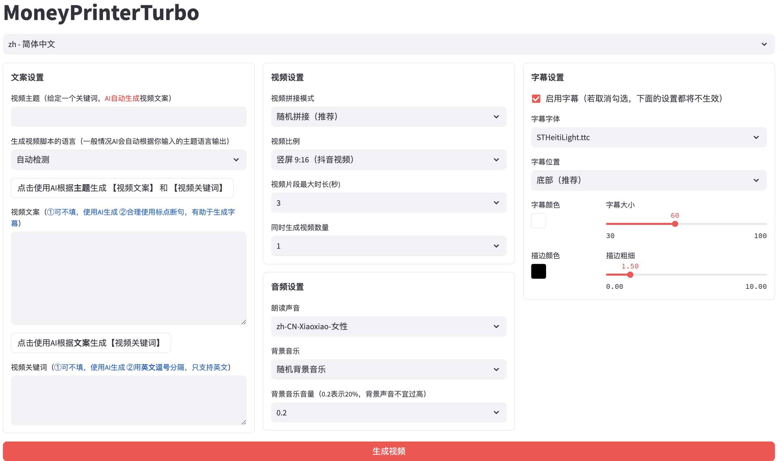 源码描述这是一套短视频AI生成系统,基于python语言开发,支持Windows本地运行,只需提供一个视频主题词(关键词),就可以全自动生成视频文案、视频素材、视频字幕、视频背景音乐,然后合成一个高清的短视频,而且质量还不错,不是那种低质的营销视频。源码运行生成原理:源码会根据你的主题(关键词),使用AI生成文案,去资源库查找合适的视频素材,而后使用语音合成工具朗读文案,并生成字幕,最后,整合(视频素材+语音+字幕)出最终的视频。