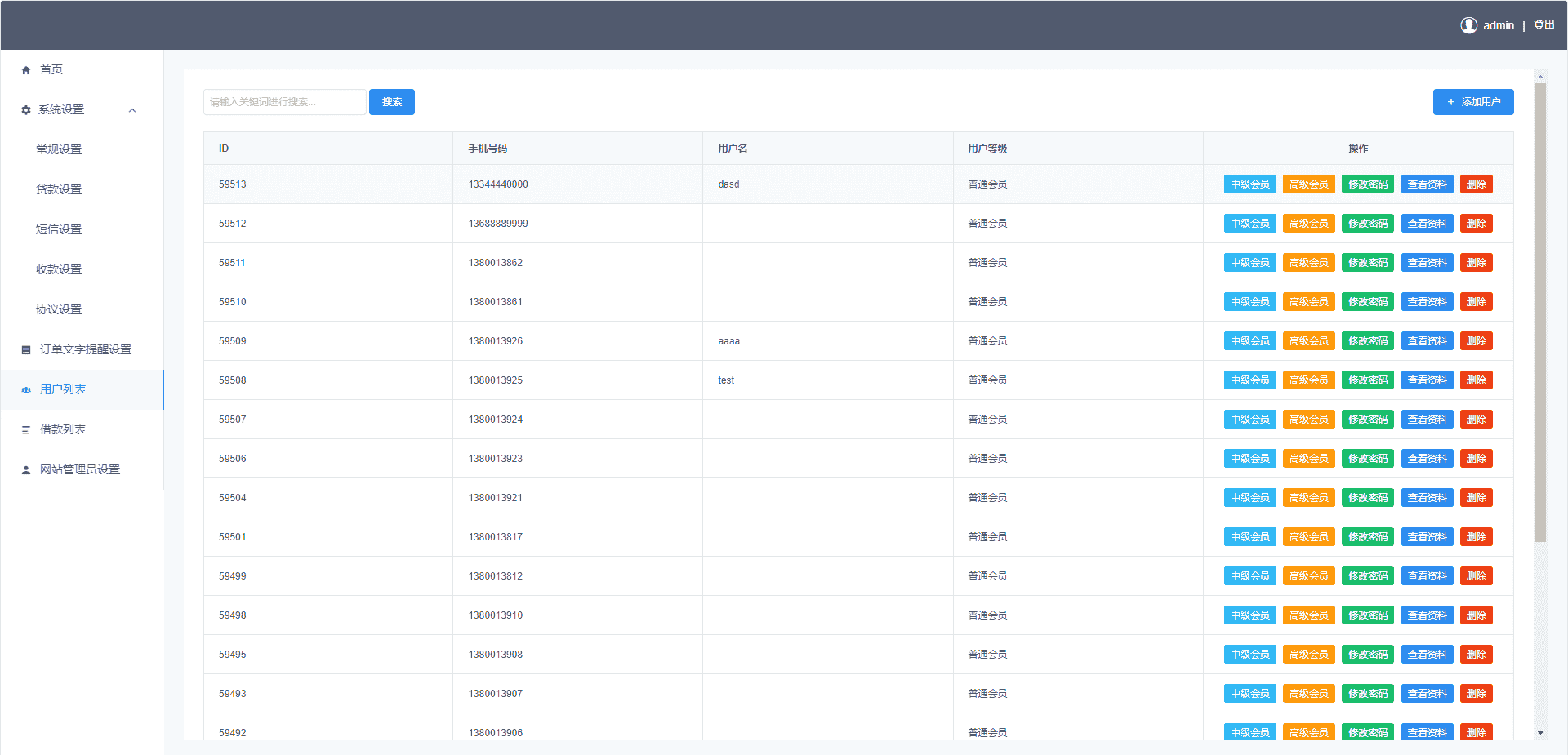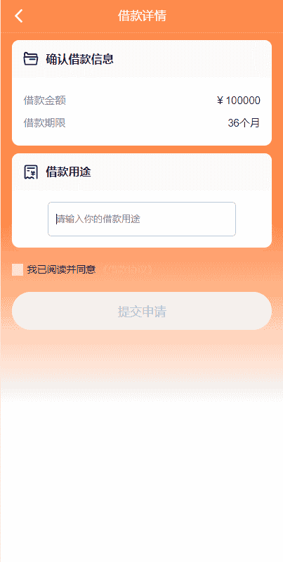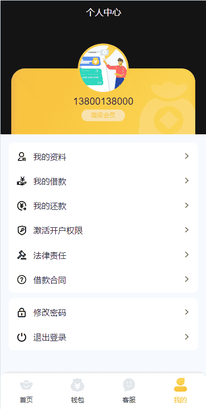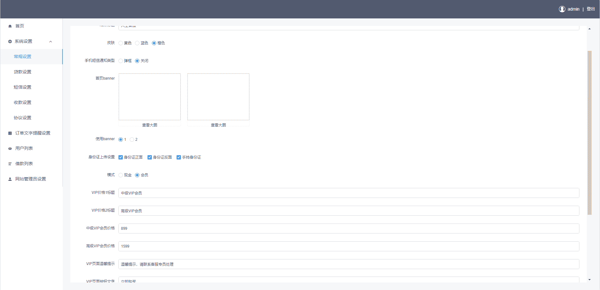 源码描述这是一套小额贷款源码,逻辑清楚操作简单,前端UI黄色大气,前端支持中文和越南语,后台、代理和前端均为vue源码,注册可对接国际短信(亦可不对接),用户注册填写资料,后台审批,审批状态可自定义文字显示。