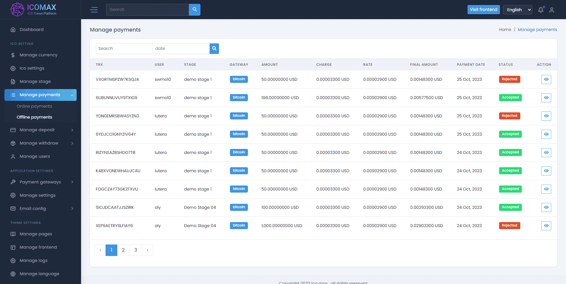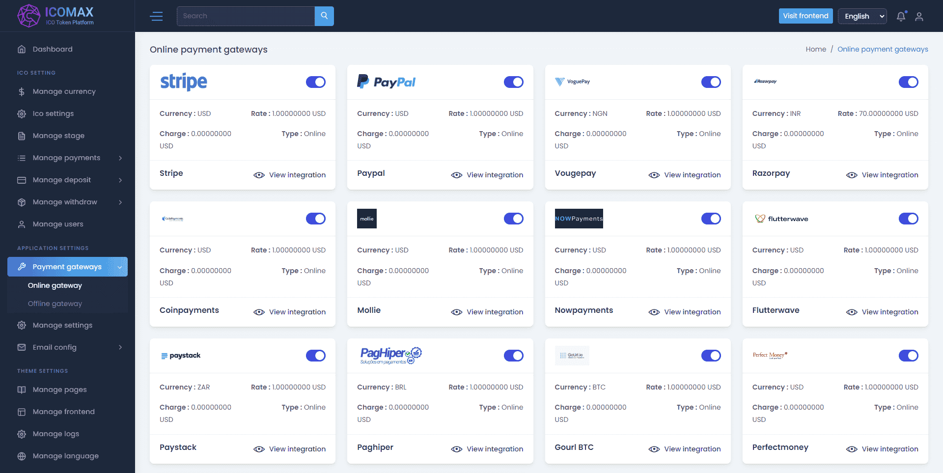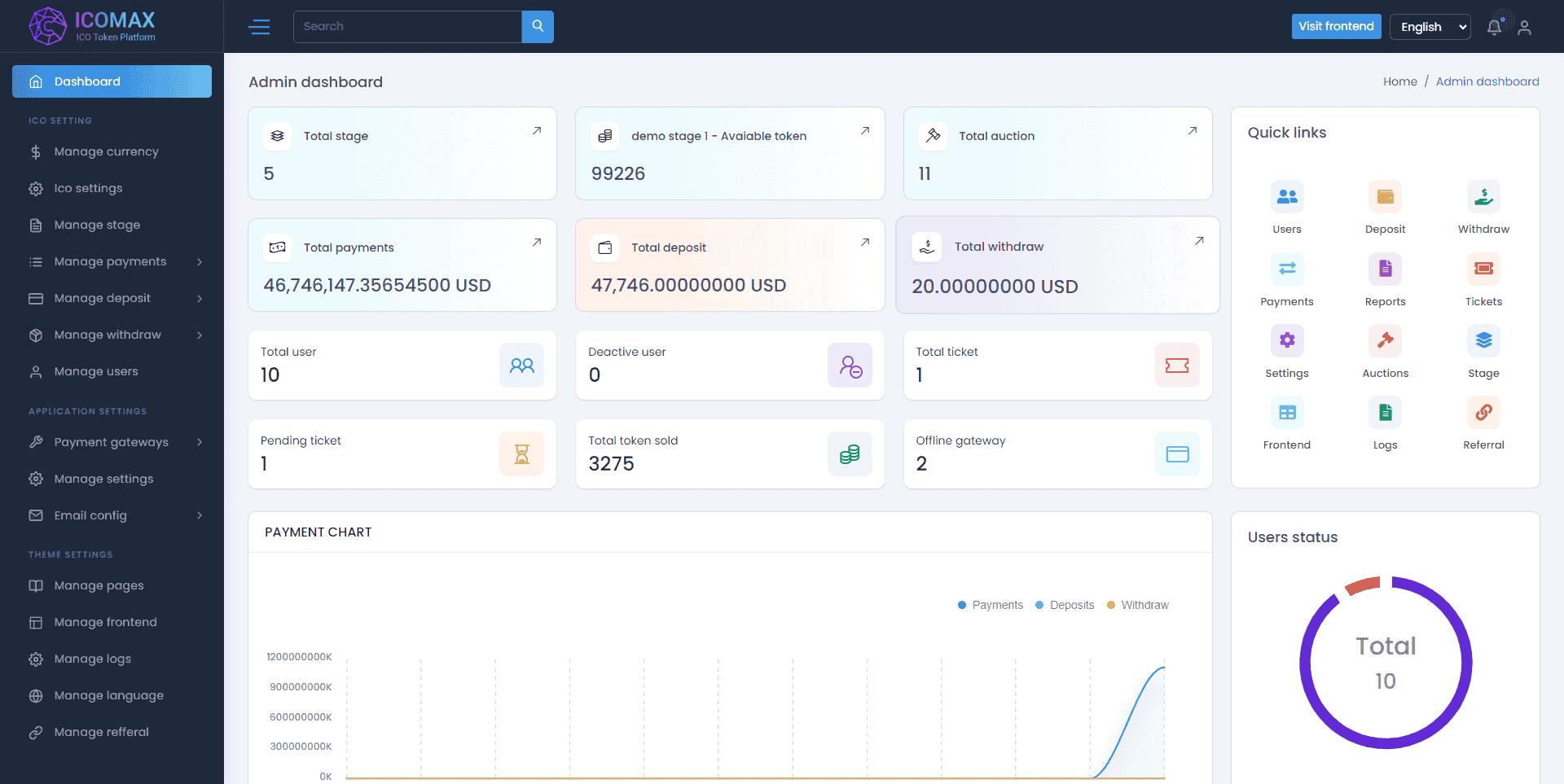 区块链虚拟币代币销售拍卖平台,加密货币全方位数字资产交易平台。是一款功能强大的数字资产交易平台,为用户提供了安全、高效的交易环境。该平台基于最新的 Laravel 8.x 框架开发,具有易于安装、多语言支持、在线/离线支付网关、KYC、电子邮件和短信验证等特色功能。此外,ICOMAX 还支持多种支付网关,包括 Razorpay、Coinpayment、Mollie Payment、NowPayments、PayStack、Flutterwave 等。用户可以使用法定货币和多种加密货币进行阶段性销售,并享受拍卖和聊天等功能。无论是个人用户还是企业机构,ICOMAX 都能满足其数字资产交易的需求。