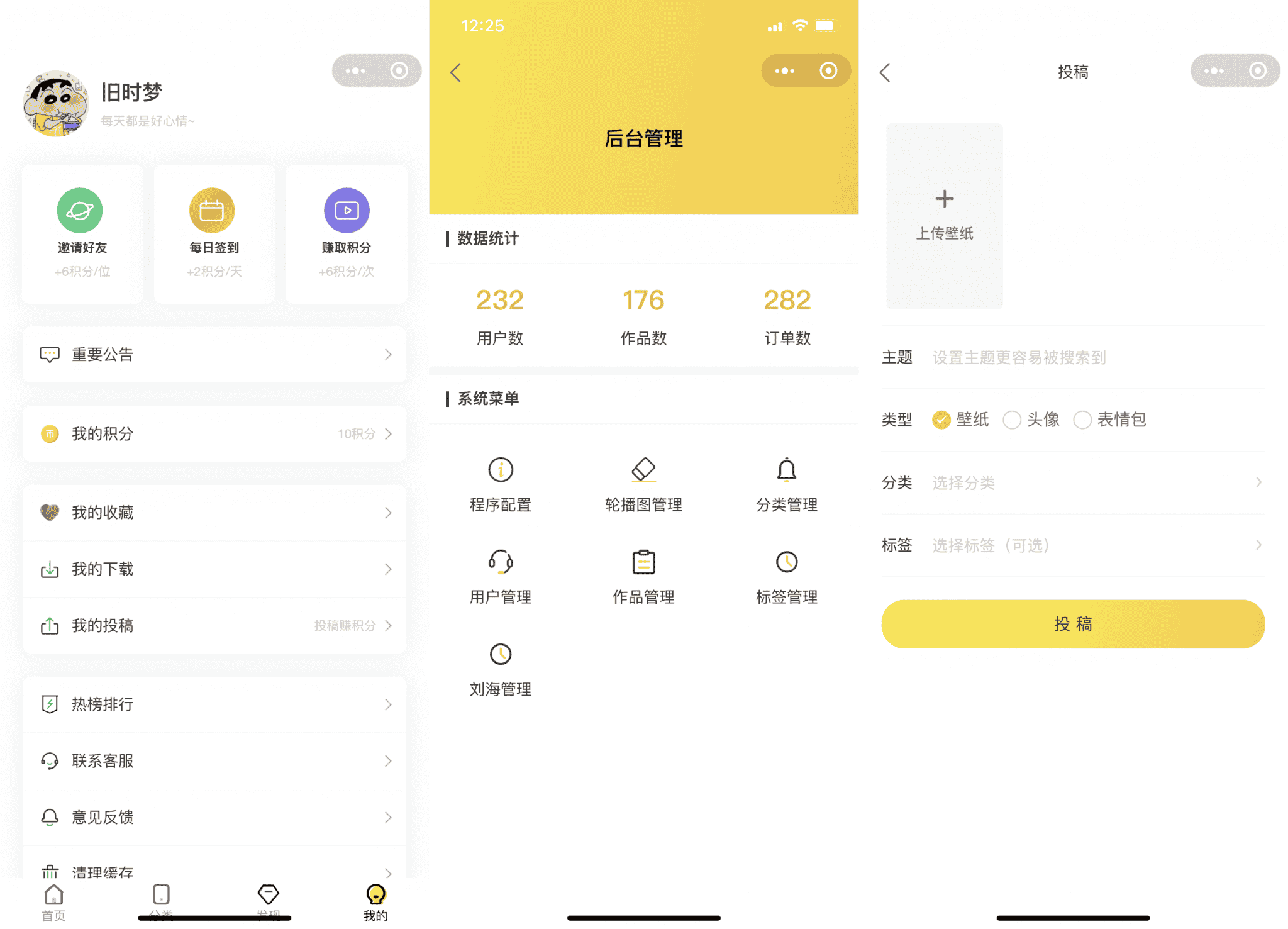 1.支持用户投稿,后台审核后会发订阅消息给用户提示作品审核状态,增加用户粘性,