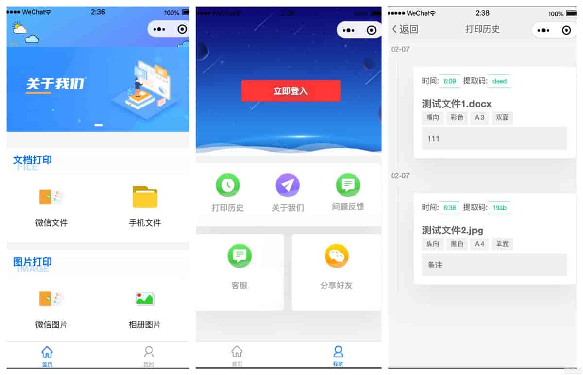 [ASP源码] Go+Vue打印店远程打印小程序源码 带微信小程序前端代码和后台程序源码