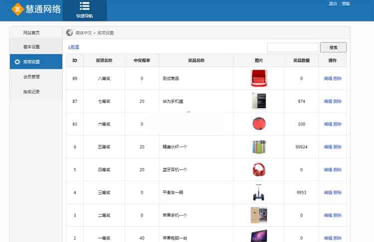 3、后台可以添加奖品图片和设置奖品的中奖概率