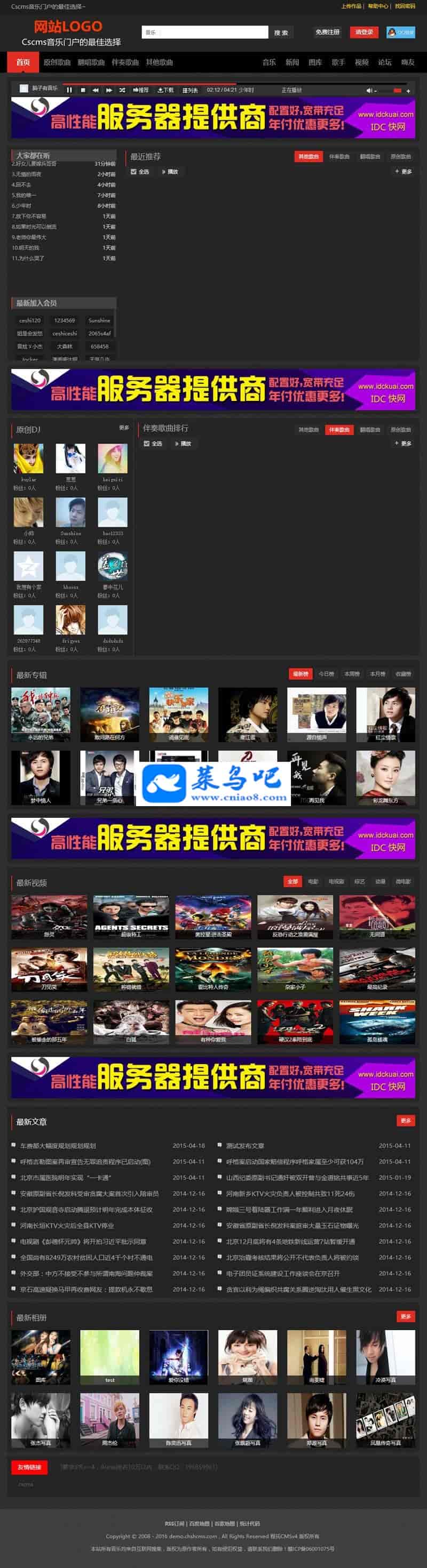 [影音娱乐] 程氏CMS(CSCMS)V4黑色炫酷模板 DJ音乐门户网站整站源码