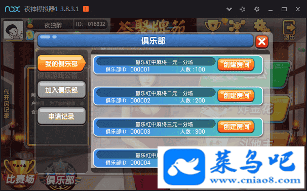 最新版本增加 比赛场、俱乐部、代开房间的功能