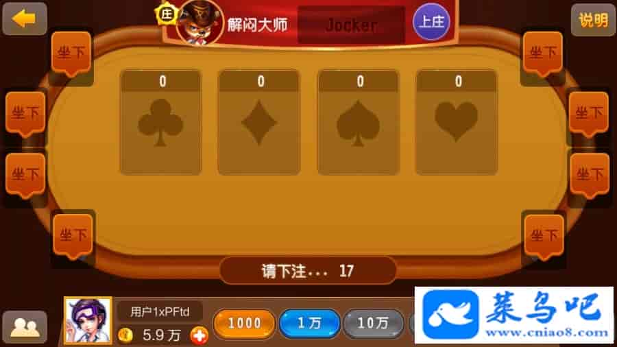 子游戏有《3D捕*+森林舞会+奔驰宝马+牛*》四种,服务器是c++ + mysql开发的,引擎版本:unity 3d 5.3 以上