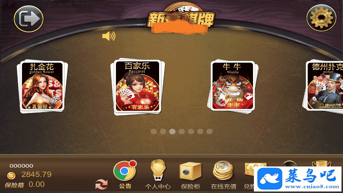 游戏内带百*乐 百人*牛炸*花 麻将 *牛 斗*主梭*德州扑克 等棋牌游戏