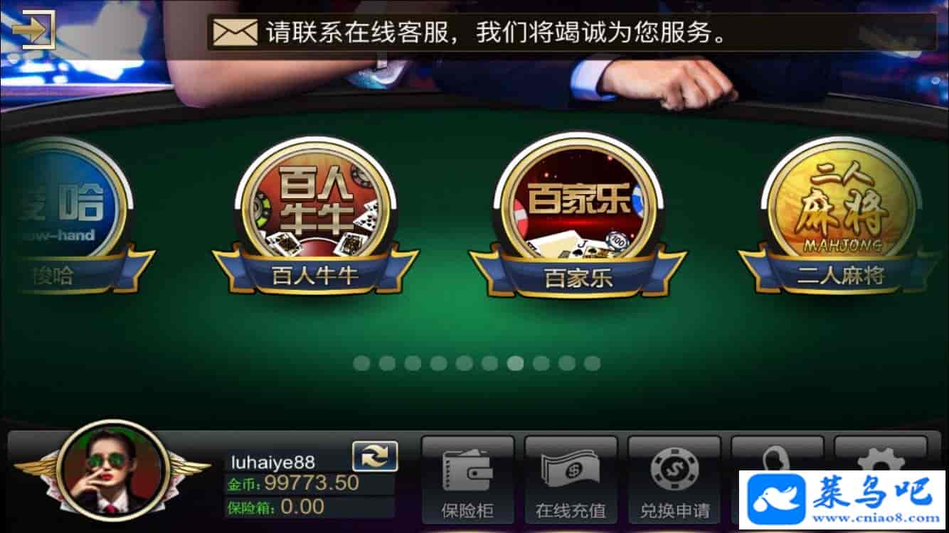 游戏内带百*乐,炸*花,麻将,牛*,斗*主,梭*,德州扑克 等棋牌游戏