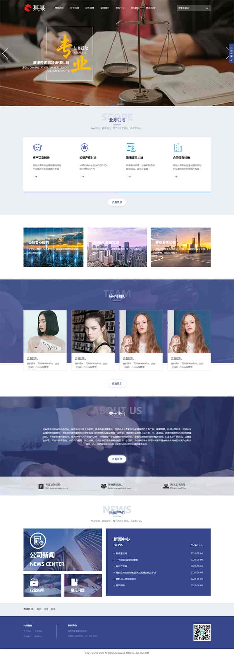 (自适应手机端)律师事务所pbootcms网站模板 响应式法律咨询网站源码下载PbootCMS内核开发的网站模板,该模板适用于律师事务所网站模板、法律咨询网站等企业,当然其他行业也可以做,只需要把文字图片换成其他行业的即可;自适应,同一个后台,数据即时同步,简单适用!附带测试数据!友好的seo,所有页面均都能完全自定义标题/关键词/描述,PHP程序,安全、稳定、快速;用低成本获取源源不断订单!后台:域名/admin.php