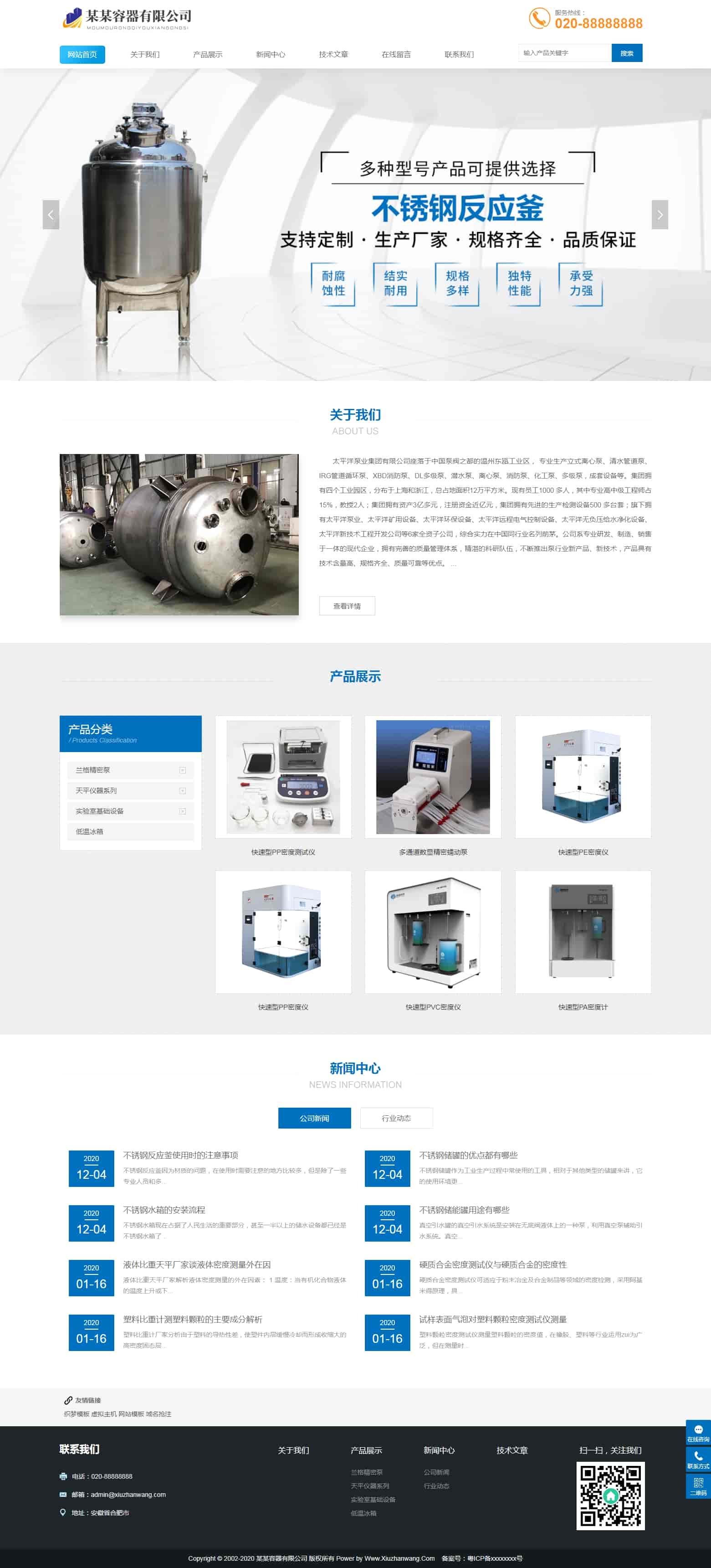 HTML5仪表容器制造公司自适应网站pbootcms模板,适用于机械制造、仪表仪器、生产厂家等行业使用,页面整洁大气,自适应结构,非常利于SEO。