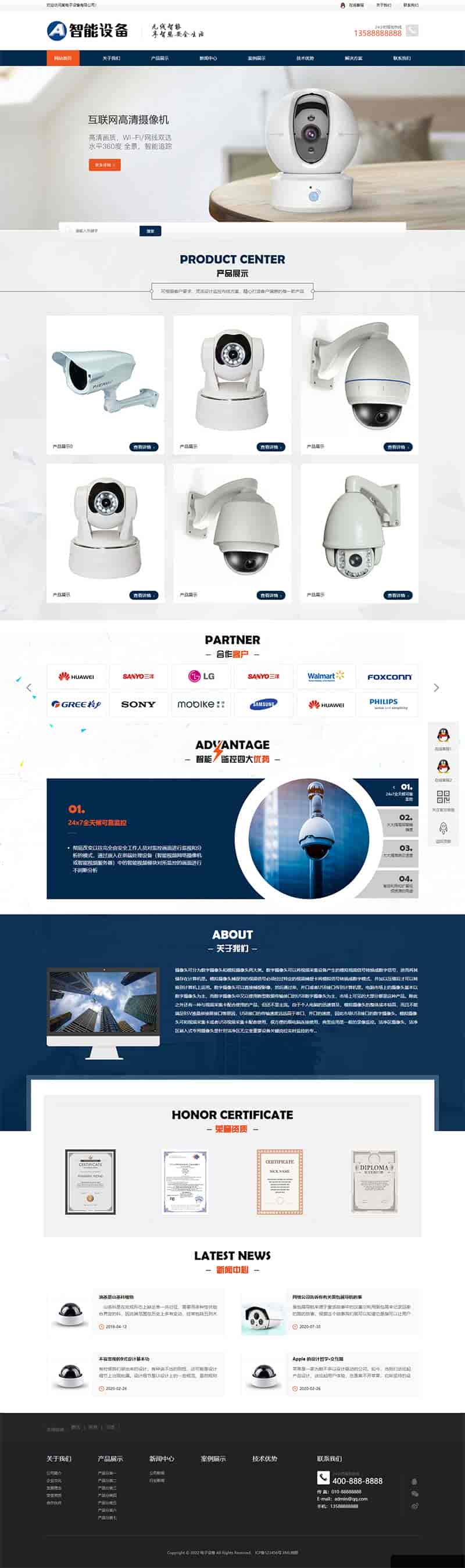 (自适应手机端)响应式智能摄像头设备pbootcms网站模板 蓝色安全防盗电子探头设备网站源码下载PbootCMS内核开发的网站模板,该模板适用于智能摄像头网站、安全防盗设备、电子产品网站模板等企业,当然其他行业也可以做,只需要把文字图片换成其他行业的即可;自适应,同一个后台,数据即时同步,简单适用!附带测试数据!友好的seo,所有页面均都能完全自定义标题/关键词/描述,PHP程序,安全、稳定、快速;用低成本获取源源不断订单!后台:域名/admin.php