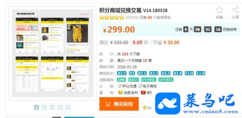 小插件,大用途,本插件能快速帮您搭建一个功能完善的积分商城,实现积分与商品或者服务的直接转化,激发起会员的活跃度,保证论坛的可持续发展。这款插件创盟资源论坛亲测,可以完美使用,功能测试无误!插件特色:界面简洁美观大方,适合各类展现。支持交易积分设置,后台可设定使用哪种积分用来交易。支持实物,虚拟交易。支持卡密自动发卡功能。支持不同积分类型交易,例 A商品使用金钱交易,B商品使用威望交易功能。支持兑换商品时自动回复功能,保证您的论坛的活跃度。支持限购设置,限制每人能购买的数量,保证人人有份。支持允许发布商品以及允许购买商品用户组设置功能,快速实现官方商城或多用户商城。支持快递设置,快捷发货设置。集成支持手机版。采用帖子嵌入开发,与论坛无缝贴合,稳定性强,功能强大