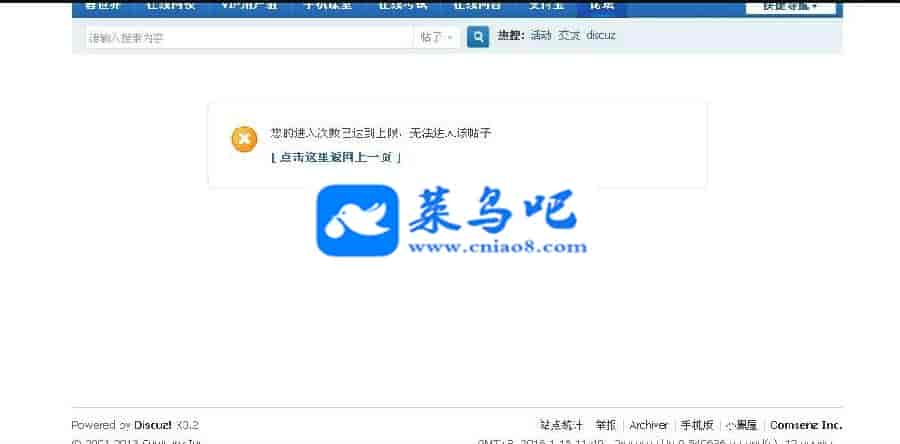 2、次数到达后,将无法进入相应的版块或帖子,只能返回上一页;