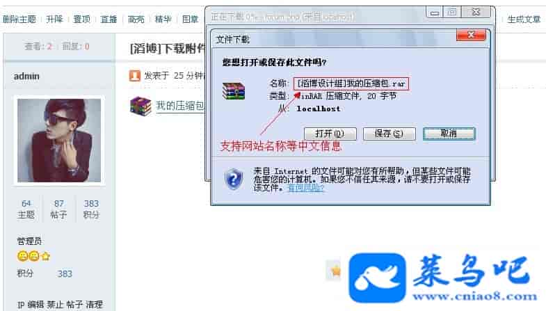 本插件可以任意设置用户在你网站下载的附件名的前缀。并且不改变附件在帖内的名称,只有用户下载才会自动添加你设置的前缀。完美支持中文+英文前缀。