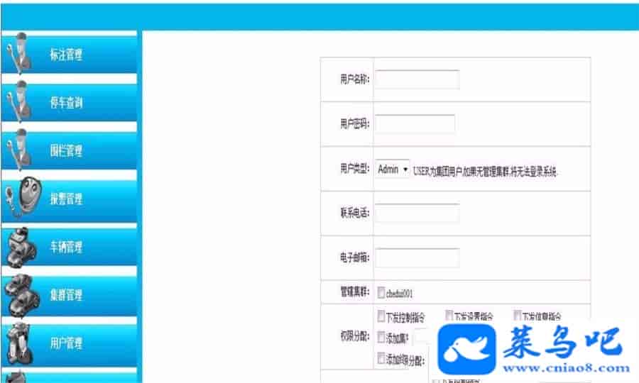 填入用户信息 admin为管理员账号在权限分配中选上该用户所拥有的权限