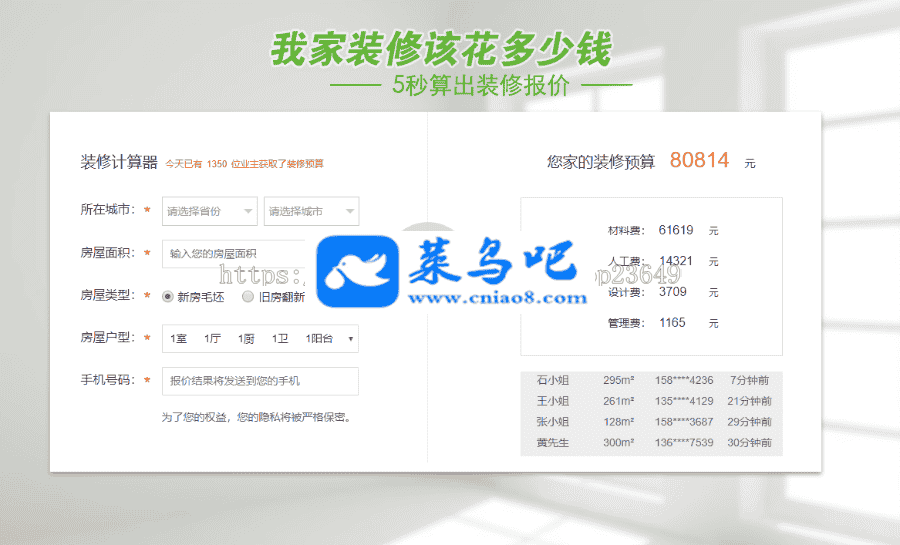 [免费源码] PHP装修报价PC+wap源码 仿土巴兔装修报价器源码