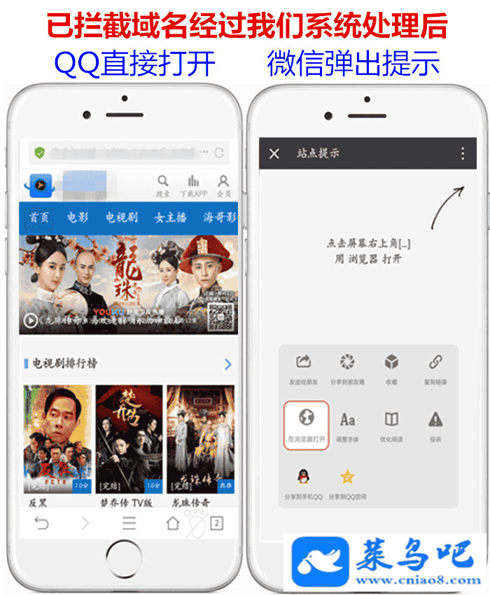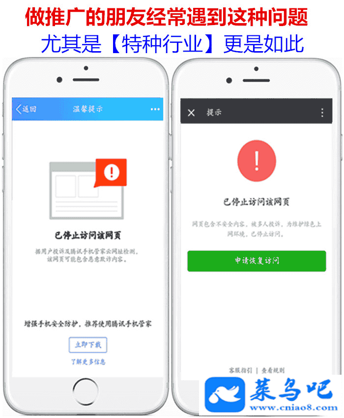 做网站的尤其是做一些电影站啥的在微信里面推广的或者一些不太好的比如涉及到钱的什么网站,难免在微信QQ里面经常推广的又难免会被QQ微信拦截。