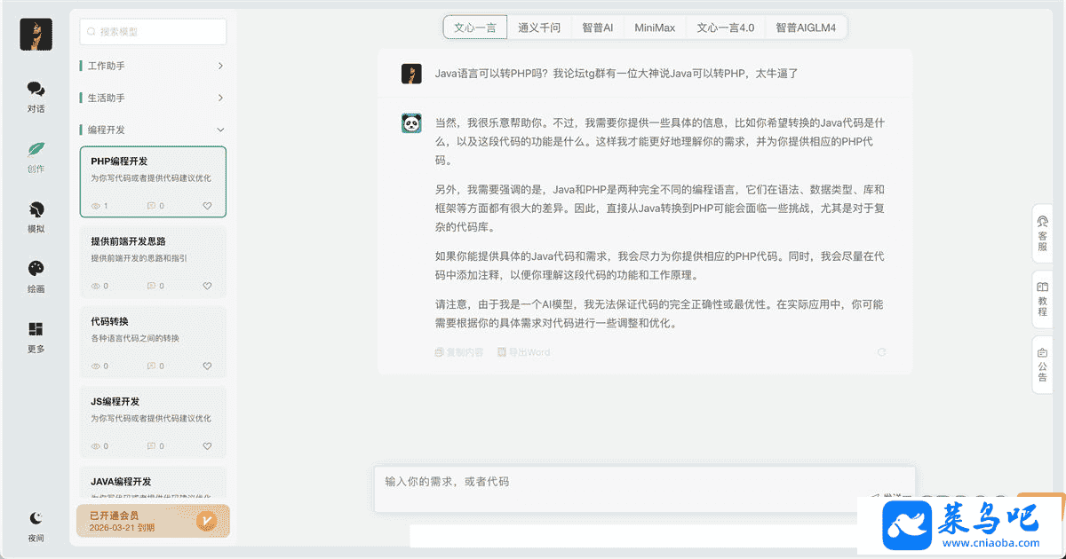 具有文章改写、广告营销文案、编程助手、办公达人、知心好友、家庭助手、出行助手、社交平台内容、视频脚本创作、AI绘画、思维导图等功能