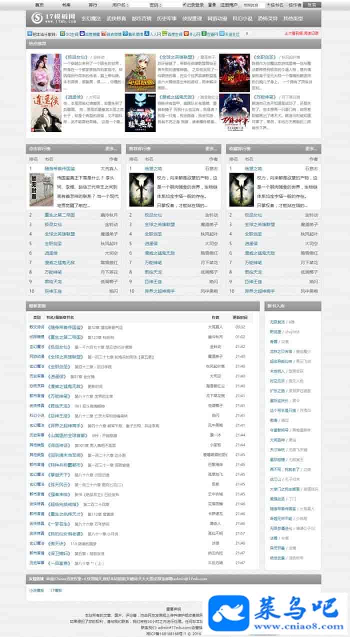 [免费源码] 杰奇仿02345零点书屋小说cms模板,大气灰色小说模板