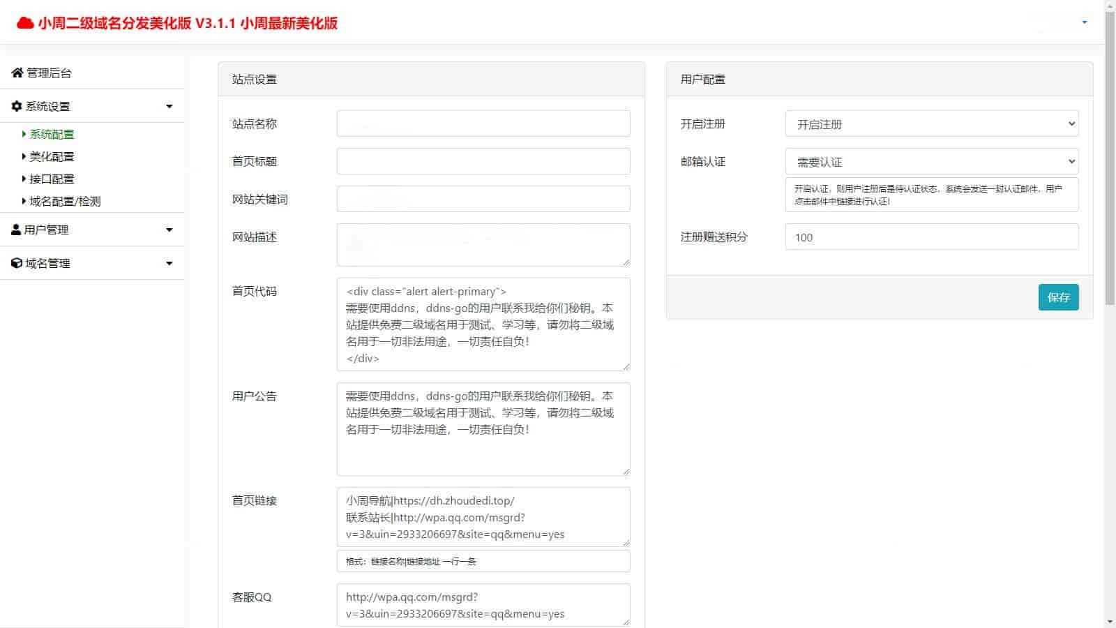 随后,在二级域名分发网站上做相应修改。