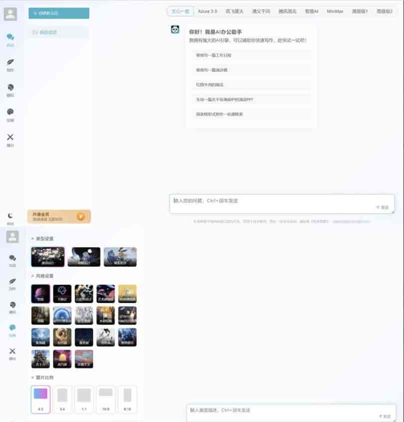1、已整合国内百度文心、讯飞星火、Azure GPT、通义千问、腾讯混元、智普AI、Claude2等主流AI系统,并支持自定义模型对接,是功能最全的AI系统之一。