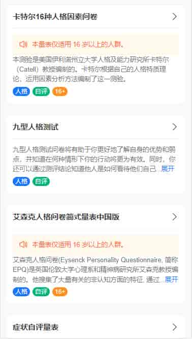 [PHP源码] 心理健康测试系统心理健康状态艾森克人格特征测试卡特尔人格问卷源码react