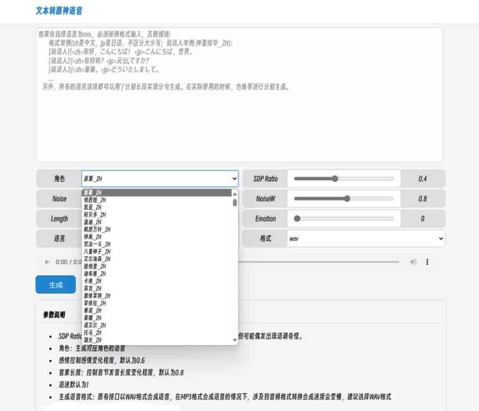 源码描述这是一套在线原神配音源码,可以将文本转换为原神语音,自带原神x星穹铁道的API接口,但是并不排除失效可能,自己可以百度搜索替换。